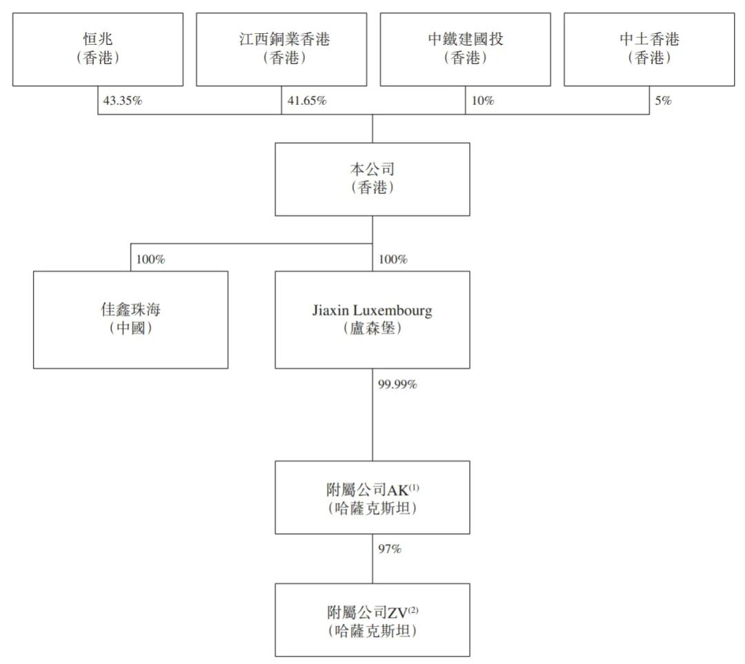 IPO前,恒兆(香港)持股为43.35%,江西铜业香港持股为41.65%,中铁建国投持股为10%,中土香港持股为5%。