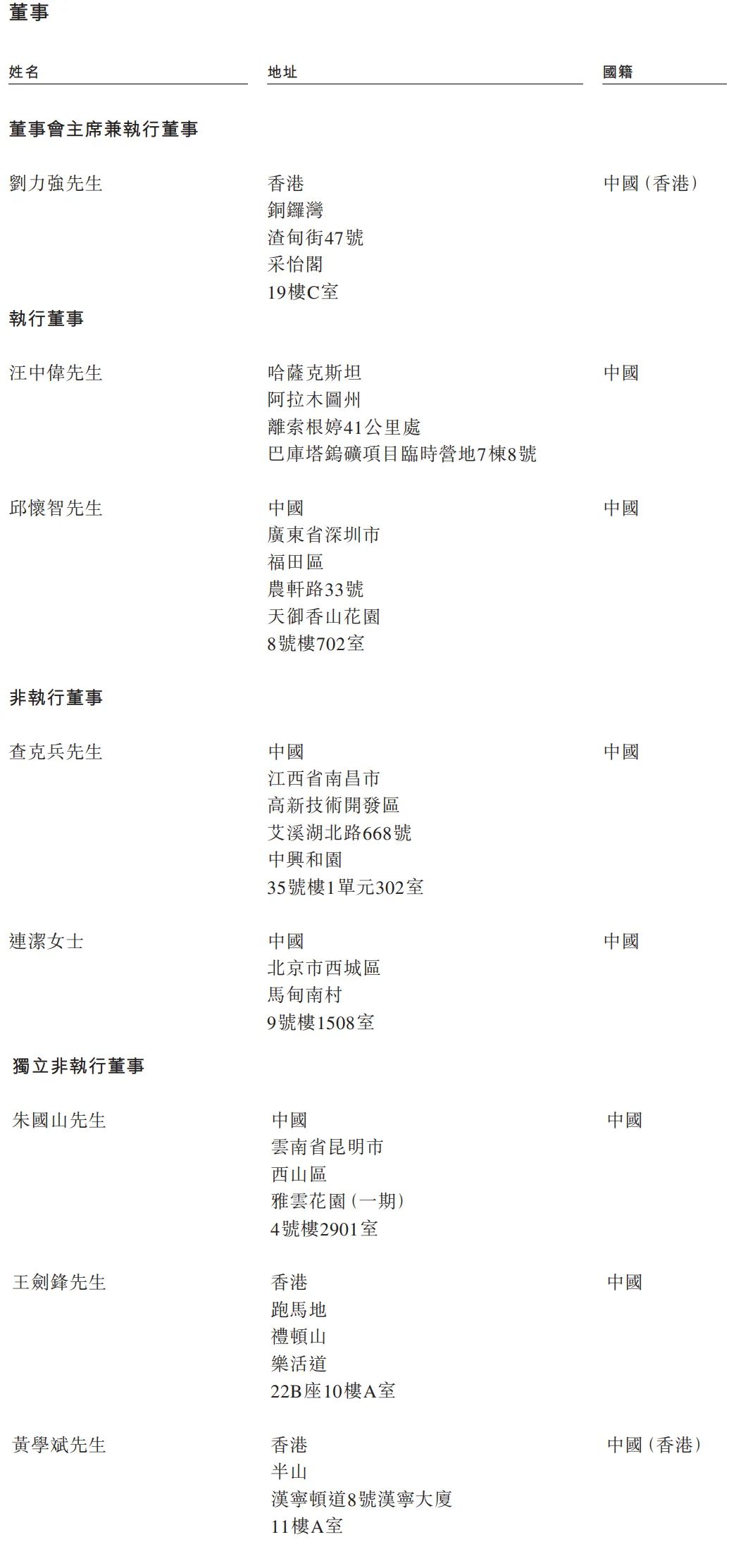 佳鑫国际董事会主席兼执行董事为刘力强,执行董事分别为汪中伟、邱怀智;非执行董事分别为查克兵、连洁女士;独立非执行董事分别为朱国山、王剑锋、黄学斌。